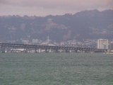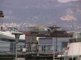 Berkeley from across the bay; the Nash Bridges barge