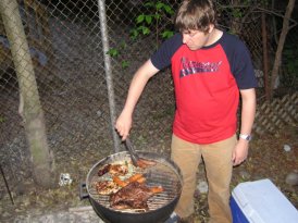 Kev grills up some meat...